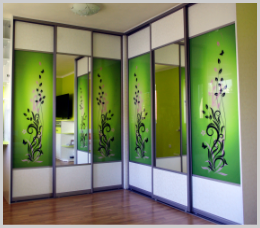 Dodáme Vám skleněné obklady, posuvné dveře pro vestavěné skříně s grafickým motivem a skleně-